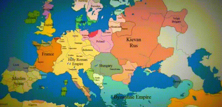 What a powerful tool to understand European history! There are so many stories contained in this image! The Irish struggle for independence, the rise and fall of the Ottoman Empire, the myriad of principalities that arose in the vacuum of power after the Holy Roman Empire collapsed. And of course, the conquest of basically all of Russia by the Golden Horde. I really think this is so cool…wish I could step through it frame-by-frame.